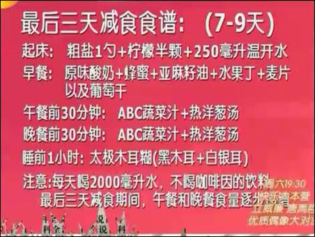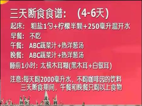 在11月4日播出的節(jié)目中,王明勇老師向各位傳授了333共9天的半斷食排毒法。
