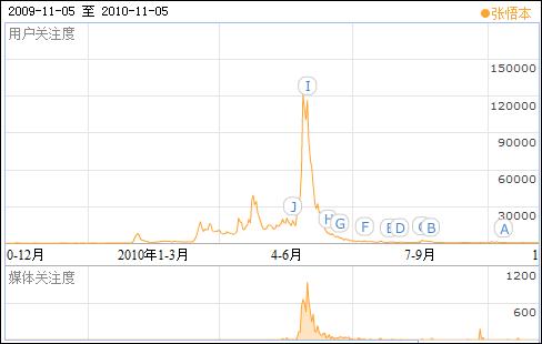 張悟本百度指數,2010年5月28日,指數高達121549,11月5日,為875點