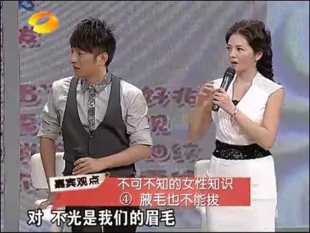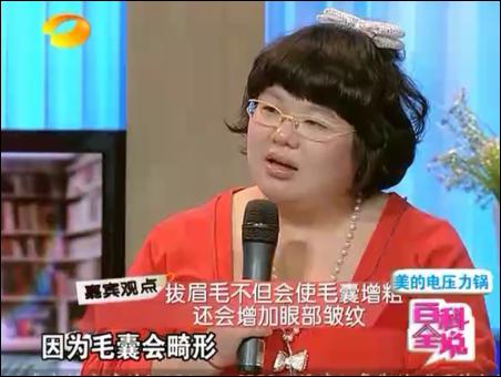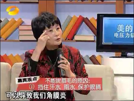 在下一小節(jié)中,王晨霞講了女人不可不知的小知識(shí),包括眉毛不能拔、腋毛不能拔、壽眉的問(wèn)題、親吻天花板等。