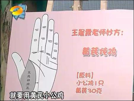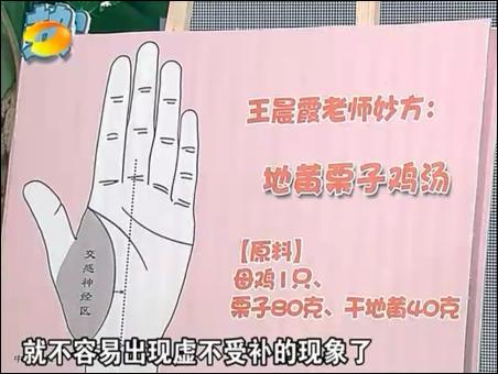 在11月10日的節(jié)目中,王晨霞重點講了女性不孕癥的相關問題,并從寒、熱、虛、實四個方面來進行的闡述,給出了相應的食療調理配方。