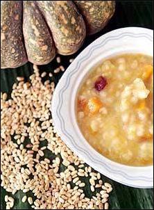 大米50g,蜂蜜適量。將大米淘凈,放入鍋中,加清水適量煮粥,待熟時(shí)調(diào)入蜂蜜,再煮一、二沸即成。每日1劑,連續(xù)3,45天??裳a(bǔ)中緩急,潤肺止咳,潤腸通便。適用于脾胃虧虛所致的倦怠食少,脘腹疼痛,肺虛干咳,或久咳不止,體虛津虧所致的大便秘結(jié)等。