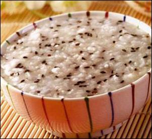 用黑芝麻適量,粳米100克。做法是將黑芝麻淘洗干凈,晾干炒熟研碎,每次取30克,與粳米100克同煮成粥即成。常食有效。