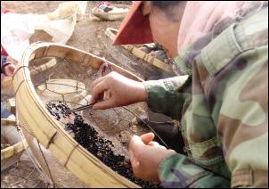 王女士說,她們存的這些貨里,上等的毛料每噸一萬元,普通的毛料兩千元?!拔易约河械V,你要多少我有多少,但那塊手指紋的毛料,一噸一萬元我可不賣。”