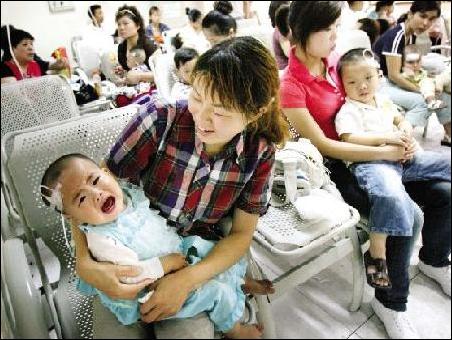 前幾天,單位一同事一歲的女兒,因注射乙腦疫苗而發(fā)熱。一開始并沒有重視,但三天后,嗓子嘶啞越來越嚴(yán)重,并且不停地哭鬧,送某大醫(yī)院,診斷為急性喉炎。由于孩子太小,無法吃藥,而且病發(fā)情比較重,醫(yī)院在孩子頭上扎針輸液,并且使用了抗生素和霧化吸入激素。