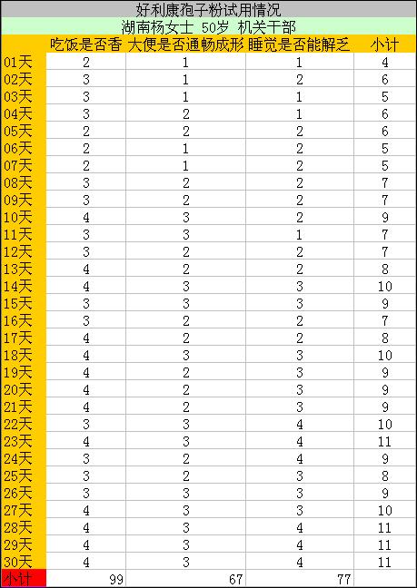 (4)第四周,孢子粉吃得最不按時。但通過三周的服用我的狀況改善了很多。特別是睡眠改善最明顯,雖然有反復但每天能睡上5個小時以上了。只是大便還沒有明顯的改善,不成形的時間多,發(fā)黑。