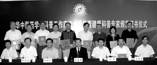 ?11位首席科普專家中,有10位參加了受聘儀式,他們分別是:(后排左起)唐旭東、張國璽、樊正倫、王琦、溫長路、晁恩祥、高學(xué)敏、尤昭玲、仝小林及王新陸(前排右二)。