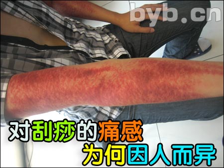 【byb.cn 大道至簡(jiǎn)】 很多網(wǎng)友們都嘗試過(guò)刮痧,但我發(fā)現(xiàn)同樣是出痧,有的人痛的呼天吼地,而有些人卻可以承受,這其中到底是什么原因呢?