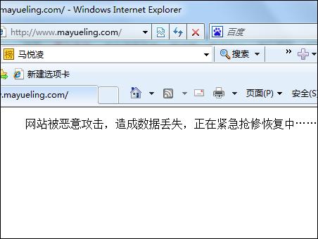 【byb.cn】 自昨天晚上,央視新聞?wù){(diào)查播出“馬悅凌神話”以后(http://zipl.cn/doc_2955.aspx),不少人馬悅凌的粉絲,在www.mayueling.com上對央視節(jié)目進(jìn)行了抨擊。今天下午15:30分左右,當(dāng)我們再次登陸馬悅凌官網(wǎng)時發(fā)現(xiàn),其網(wǎng)站已經(jīng)被亂字符取代,顯然是被黑了。