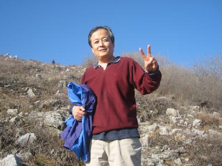晚秋,因為太胖,只上了三分之一,就退縮了。我、張律師、落梅一起向山頂沖擊。天非常的晴朗,萬里無云,基本上沒有風(fēng),大家的心情很好。