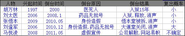 不過,上述這些大師雖然“倒了”,但他們走過的每一步,對這個社會同樣也是一種沖擊,他們在健康教育上對社會的正面貢獻(xiàn),遠(yuǎn)遠(yuǎn)大于負(fù)面影響,畢竟,再沒有人為此而入獄,這不能不說是一種社會的進(jìn)步!