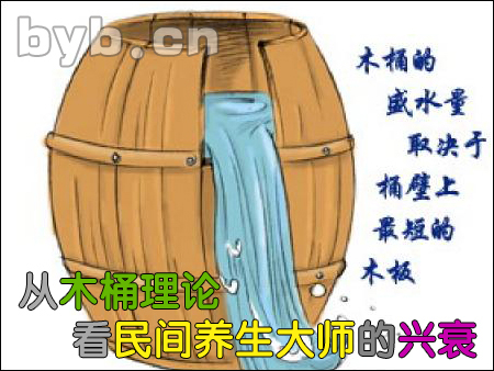 這就是由美國人彼得提出的木桶原理,或稱為木桶效應(yīng)。很多民間的養(yǎng)生大師或者神醫(yī)的興衰歷程,也正說明這一點。盡管他們的衰落原因各異,但有一點是共通的,就是他們的能力發(fā)展極不平衡。為了說明此觀點,我們分別點評一下上述養(yǎng)生大師。