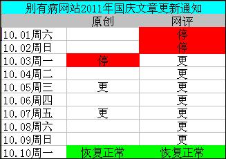 【byb.cn?管理員】?現(xiàn)將別有病網(wǎng)站2011年國慶放假通知公布如下: