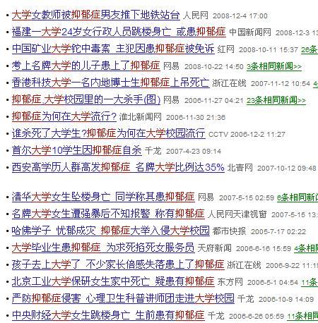 關(guān)于高校為何頻發(fā)抑郁癥的問題,我們來看一篇2007年5月28日《法制晚報(bào)》的報(bào)道: