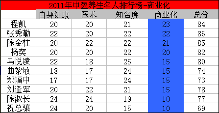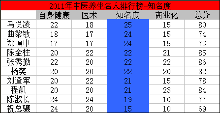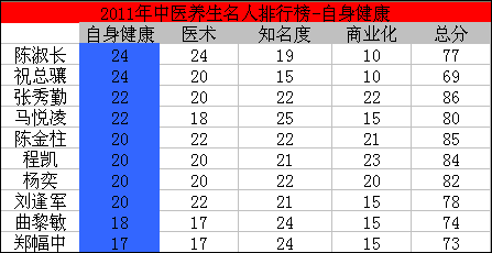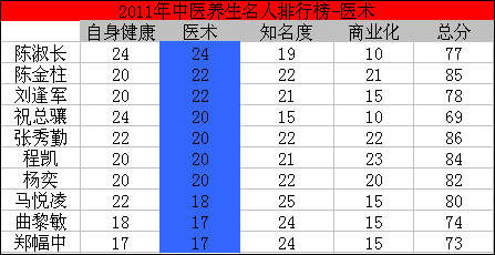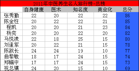 2011年中醫(yī)養(yǎng)生名人排行榜