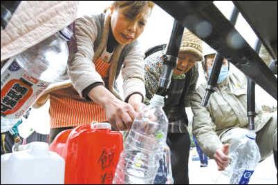 圖一:3月16日,日本巖手縣大船渡,居民在指定地點(diǎn)接取飲用水。