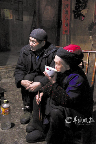 ?。ㄕ裕盒氯A網(wǎng)) 1月20日,春雨綿綿,羊城晚報(bào)記者從貴州省黔南自治州都勻市出發(fā),驅(qū)車百余公里前往平塘縣通州鎮(zhèn)黨振村探訪一對(duì)壽星夫婦。沿途盡是蜿蜒的盤山公路、陡峭泥濘的山道,艱難行走了4個(gè)多小時(shí)后,終于尋至壽星夫婦楊勝忠、金繼芬的家,與兩位老壽星一起吃上年飯。