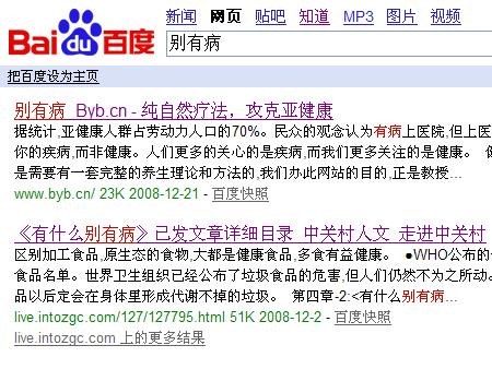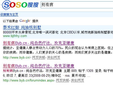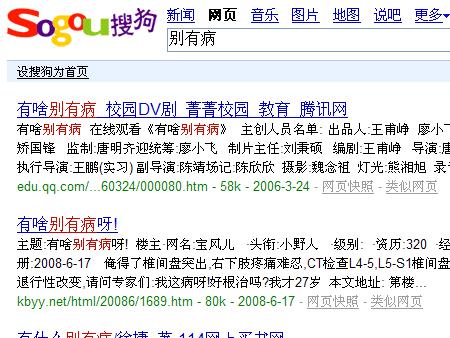 以搜索“別有病”為關鍵字,下面是各大搜索引擎的搜索情況: