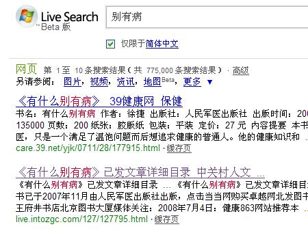 微軟的LIVE沒有收錄進去,但把以前發(fā)在走進中關村的文章收錄也算勉強