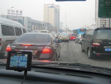 可能是頭幾天天津下了大雪,也加上周六那天天氣灰朦朦的,給我的印象就是天津的城市街道很臟,空氣也污突突的。最令人不解的是,在周六這段時(shí)間,堵車很嚴(yán)重,而且行人根本不看信號(hào)燈,不管什么燈,都有人橫穿馬路,車根本開不起來(lái)。而且很多車并線都不打燈,讓你防不勝防。