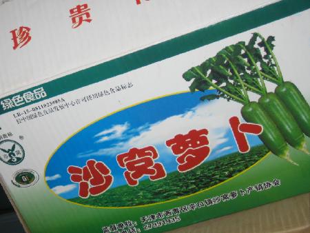 沒買著包子,那也不能空手而歸啊,看到食品街里正在舉行沙窩蘿卜節(jié),就是我們平常見的大綠蘿卜。和過去吃的心里美有一拼,屬于水果型蘿卜。我們一想這東西不錯(cuò),號(hào)稱綠色食品,冬吃蘿卜夏吃姜,買回去大家嘗嘗。于是一人買了一箱(10斤)。回到家,S先生的老婆說(shuō),這東西在北京也有賣的,才1塊多一斤,你們倆平常不買菜的,啥行情都不知道。