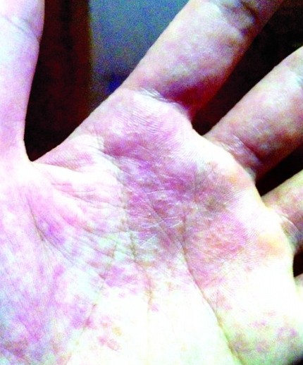 “我睡覺(jué)前還好好的,第二天起床卻發(fā)現(xiàn)除了臉上,手上腳上胳膊上足底全都是小水泡。”李女士說(shuō)道,“之前沒(méi)有什么癥狀,就是脖子癢癢?!比ナ辛⑨t(yī)院皮膚科看了醫(yī)生后,醫(yī)生告訴她這是一種皮膚過(guò)敏的癥狀,主要是工作壓力大造成的。記者見(jiàn)到李女士時(shí),看到她的手正面長(zhǎng)滿(mǎn)了紅色小水泡,手背也長(zhǎng)滿(mǎn)了水泡,腳上和胳膊上也都是水泡。 “醫(yī)生說(shuō)等我自己調(diào)理好了,水泡就會(huì)自然消失,這主要和我自身免疫力有關(guān),斷不了根。同時(shí)這也和我們的工作壓力、辦公室環(huán)境以及電腦輻射有關(guān)系?!崩钆勘硎?。