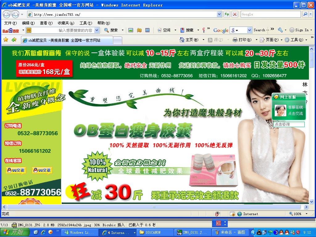 前幾天,本站又發(fā)了一篇文章:婷之美瘦身膠囊涉嫌欺詐宣傳,結(jié)果,12月30日,一個(gè)來(lái)自青島的電話0532-8979785X,打了過(guò)來(lái),聲稱(chēng)本站詆毀他們產(chǎn)品聲譽(yù),要求撤稿,本站沒(méi)同意,結(jié)果,過(guò)幾天,婷之美人家不做了,改成OB蛋白瘦身膠囊了,大家可以看一看:http://www.jianfei793.cn/,也不日本技術(shù),歐洲專(zhuān)利了,而且林志玲居然也成了他們的代言人。