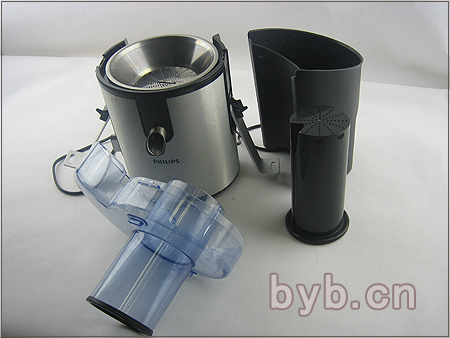 從左至右為接果汁杯、主機(jī)、殘?jiān)?br />