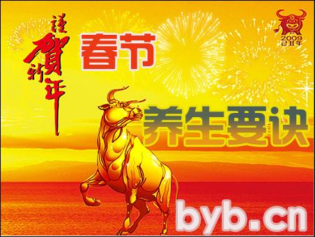 【byb.cn 管理員】 牛年春節(jié)馬上就要到了,作為一家關注自然療法的養(yǎng)生網(wǎng)站,本站為各位準備了一些春節(jié)養(yǎng)生的要訣,從吃、穿、行、玩四個方面為大家提供點養(yǎng)生的知識,謹供參考。