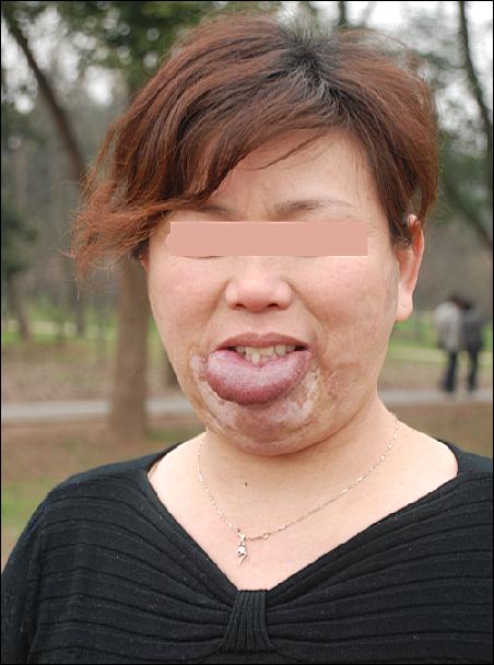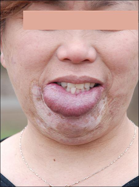 3歲時(shí)父母就帶我到處求醫(yī)。武漢、上海各大醫(yī)院都治到了,但沒(méi)有效果。最早在我3歲時(shí),那時(shí)醫(yī)學(xué)不發(fā)達(dá),曾經(jīng)經(jīng)過(guò)冷凍療法,還用膏藥把這個(gè)地方刮掉過(guò)。現(xiàn)在下巴下就留下白顏色的疤痕。