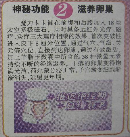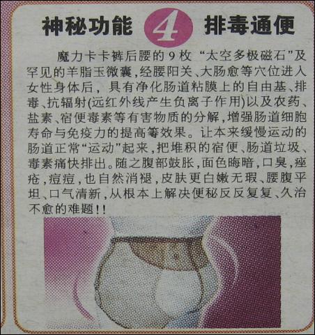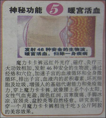 為了打造魔力卡卡褲的神奇之處,廣告還吹噓有五大神秘功能,看后不能不令人咂舌。