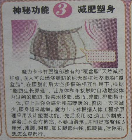 魔力卡卡褲涉嫌虛假廣告宣傳