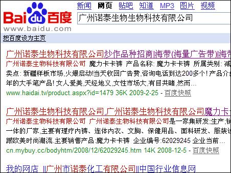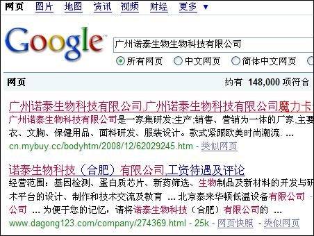 從電話的交談看,這款產品肯定有問題,當我們上網(wǎng)搜索:廣州諾泰生物科技有限公司時,卻發(fā)現(xiàn)竟然是這樣: