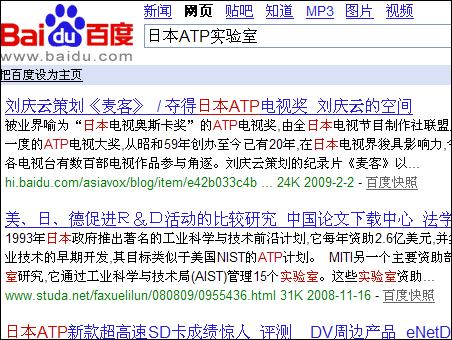 百度和Google兩家搜索引擎均未搜索出:日本ATP實驗室。