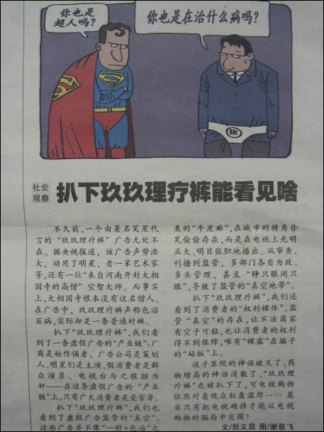 那么我們反過(guò)來(lái)問(wèn)一下,我們職能部門(mén)的監(jiān)管都到哪去了?面對(duì)形形色色的醫(yī)療保健品的廣告,我們媒體的良心何在?我們的社會(huì)責(zé)任感何在?