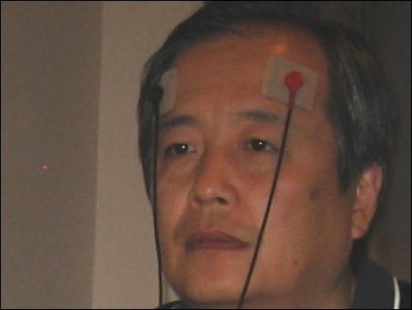 這臺機(jī)器有6個觸點(diǎn),即額頭、雙手、雙腳(均需要皮膚裸露于金屬板上,有點(diǎn)類似做心電圖)。