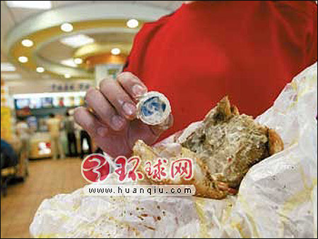 徐先生夫婦2005年在馬連道肯德基餐廳吃黃金烤雞腿堡時(shí),吃出了一只瓶蓋。 “幸虧我反應(yīng)及時(shí)沒有咽下去,否則卡在食道里就危險(xiǎn)了?!毙煜壬f(shuō)。該餐廳經(jīng)理承認(rèn)這只漢堡內(nèi)有異物是店方的責(zé)任。“瓶蓋是用來(lái)噴醬的噴槍頭,有可能槍頭松動(dòng)連醬料一同噴進(jìn)了漢堡內(nèi)未被發(fā)現(xiàn)。”