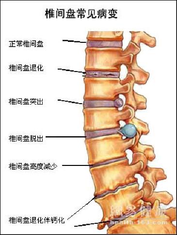 上圖是我們的脊椎病變示意圖。我們脊椎的骨頭和骨頭之間,都會有脊間盤。 那椎間盤到底有什么作用呢?椎間盤這個東西,里面80%都是水,越是年輕人,里面的水份含量就越高。等人老了,水分丟失了,椎間盤就收縮了,所以,人老了,身體就抽抽了,就是這個道理。其實(shí)這里指的水分,就是血液。