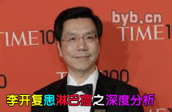2013年的9月5日晚22:17,李開復(fù)在微博上公布了自己患淋巴癌的消息,別有病站也在第一時間(2013年9月9日)對李開復(fù)的病情進行了獨家的深入分析和報道:"李開復(fù)患淋巴癌之深度分析"(http://zipl.cn/doc_5898.aspx) ? 李開復(fù)患癌一年,...
