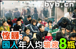 12月24日,在舉行的十一屆全國人大常委會第十八次會議上,就《國務(wù)院關(guān)于深化醫(yī)藥衛(wèi)生體制改革工作情況的報告》開展專題詢問時,國家發(fā)改委副主任朱之鑫應(yīng)詢回答了王寧生委員提問,他說:去年一年中國輸液用了104億瓶,相當(dāng)于13億人口每個人輸了8瓶液,遠(yuǎn)遠(yuǎn)高于國際上2.5-3.3的水平,“過度用藥危害了人民的健康和生命安全”。
